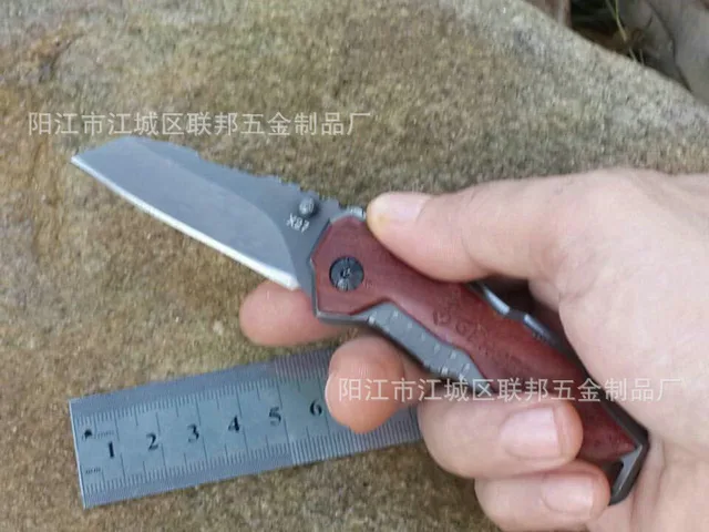 제품 설명:길이: 150 미리메터블레이드 길이: 65 미리메터생크 길이: 88 미리메터28 미리메터 블레이드 폭:블레이드 두께: 2.7 미리메터블레이드 재질: 3 cr13mov무게: 82 그램 (포장)하드 360도: 55 HRC티타늄 코팅 테이블 표면:핸들 재질: 로즈 우드