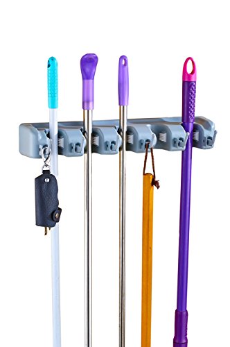 JINTOP Mop And Broom Holder Kitchen Organizer Wall Mounted Hanger Hooks Brush Storage Organization Strong Garden Gym Shelving Tools