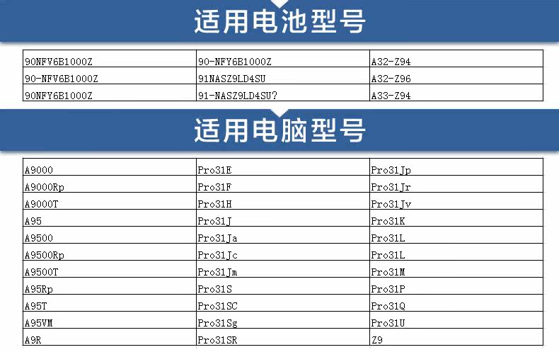 华硕 A32-Z96 A33-Z94 Z9 A9T A9W A9000笔记本电池9芯