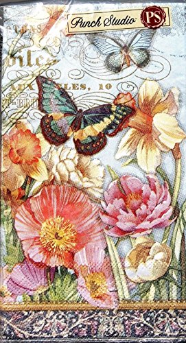 95981 Punch Studio Boutique 32 Ct Guest Towels / Dinner Napkins Daffodil Fields Floral Butterfly