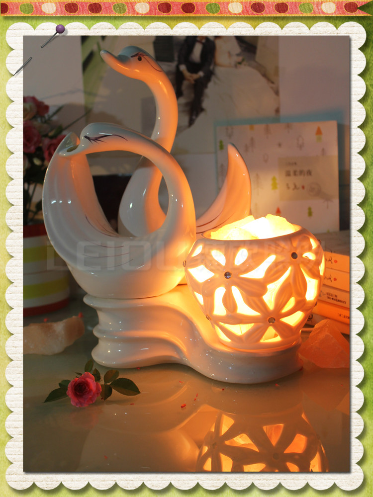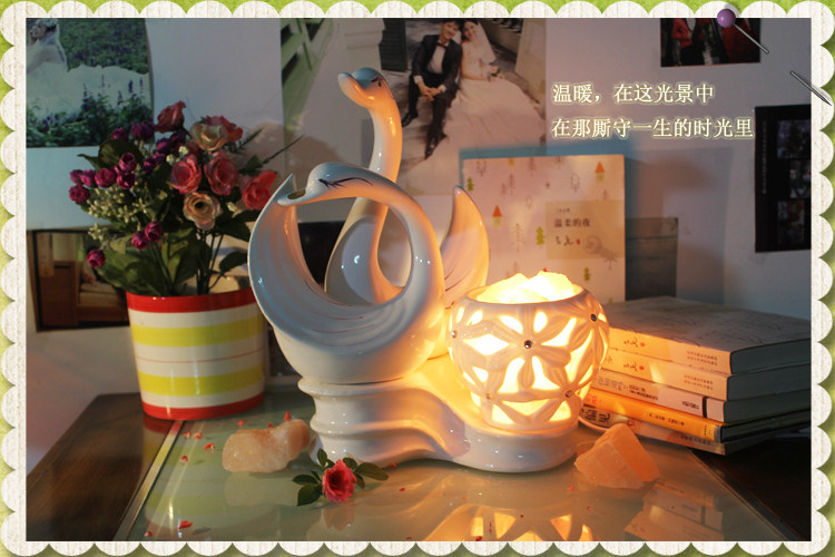 水晶盐灯天鹅创意台灯客厅卧室床头欧式温馨浪漫装饰结婚喜庆礼物