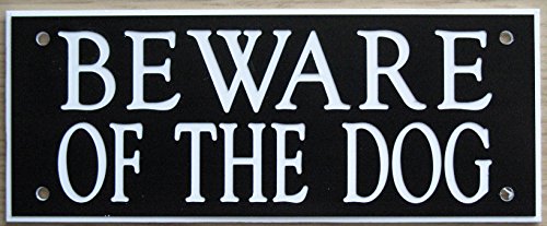 ACRYLIC BEWARE OF THE DOG 5" X 2" SIGN IN BLACK WITH WHITE PRINT …