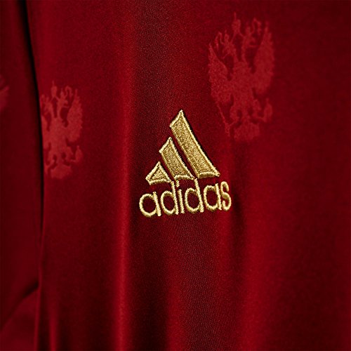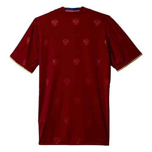 -. Binding : Apparel -. Brand : -. Color : Collegiate Burgundy -. Department : mens -. Feature : Ventilated climacool® keeps you cool and dry / Ribbed V-neck with Russian flag back neck detail / Russian Football Union woven badge on left chest; Allover embossed fabric / This product is part of the sustainable product program: Products are made in more sustainable ways to make the world a better place; Every fiber counts: Recycled polyester saves resources and decreases emissions -. Model : AA0353 -. PackageQuantity : 1 -. ProductGroup : Apparel -. ProductTypeName : SHIRT -. Title : Men's Soccer Russia Home Jersey