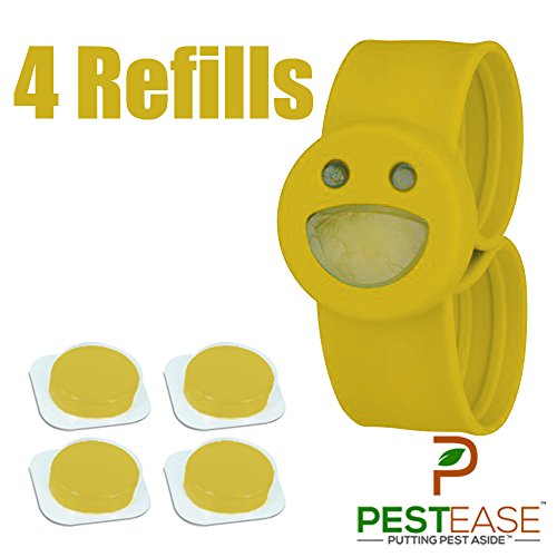 -. Brand : PestEase® -. Feature : PestEase® Kids Mosquito Repellent Slap Bracelet is the perfect outdoor accessory for all ages! You have a color choice of Pink, Blue, Green, Yellow or Red. Each bracelet is 9 inches long and fits comfortably around your wrist, ankle, or baby stroller. / Each Bracelet Provides 60 days of protection against Mosquitoes & Insects. Each bracelet comes with two refill packs and each pack provides 15 days of protection. Refill packs are 100% Deet-Free and have a light lavender scent. / PestEase Kids Mosquito Repellent Slap Bracelet is designed to fit most wrists with an unique lightweight, For children under 3 years old, supervision is recommended. If you're not comfortable using on your baby, you can always wrap it around your stroller for protection while outdoors. -. Label : PestEase® -. Manufacturer : PestEase® -. ProductGroup : Lawn & Patio -. ProductTypeName : OUTDOOR_LIVING -. Publisher : PestEase® -. Studio : PestEase® -. Title : PestEase® Slap On Kids Mosquito Repellent Bracelet - 60 Days Of Protection - 4 Refills - Made of All Natural essentials oils - DEET-FREE