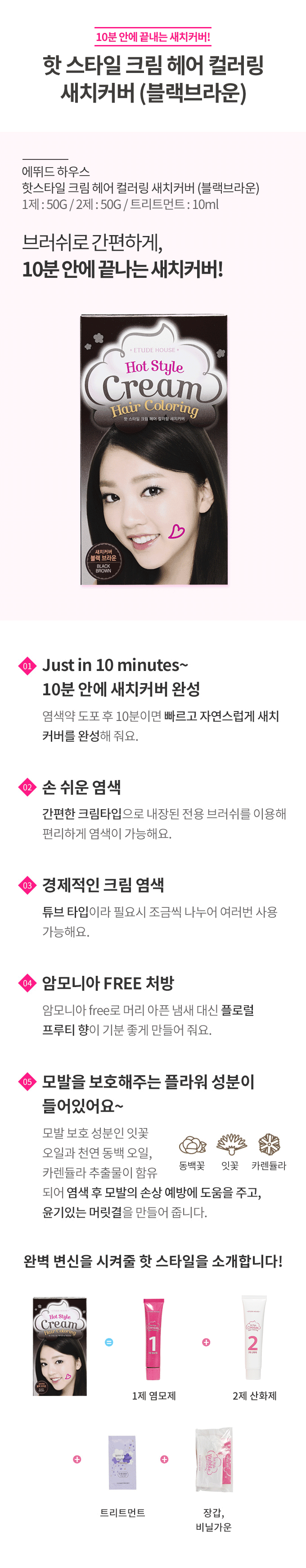 ホットスタイルクリームヘアカラーリング若白髪カバー(黒褐色)NEW - [韓国コスメ]
