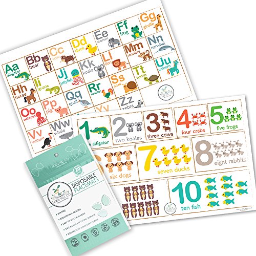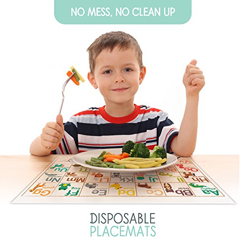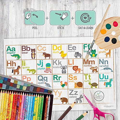 Fawn Hill Co Disposable Placemats for Children - Table Top Design with Adhesive Sticky Backing - 60 Count - Educational Animal Design