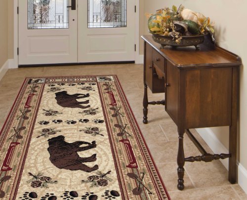 Studio : Universal Rugs Publisher : Universal Rugs Binding : Misc. Product Description Inspired by the majesty of the forest, featuring earthy colors and finely detailed scenes of nature. Created in shades of brown with highlights of red, green and blue, this bear is sure to grab your attention. This runner is the perfect choice to bring the outdoors inside. It is constructed from 100% polypropylene for lasting quality. This rug is available in two sizes for versatility. 0