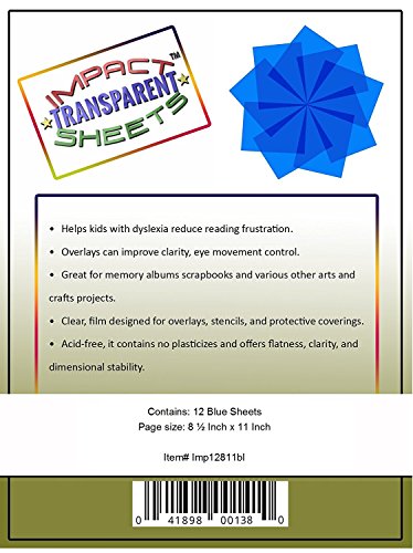 12 Pack - Colored Overlays, Transparency Color Film Plastic Sheets, Correction Gel Lighting Filter, Full Page 8½” x 11”, Blue
