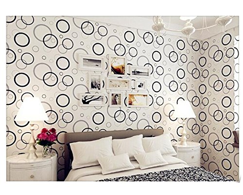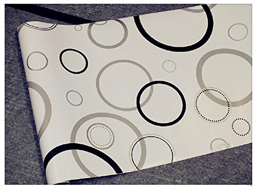 7Buy Just Peel and Stick Modern Minimalist Geometry Circle Shapes Wallpaper Waterproof Removable Vinyl Wallcoverings for Home Decor,Bedroom,Kitchen 17.7"X393.7" (black white )