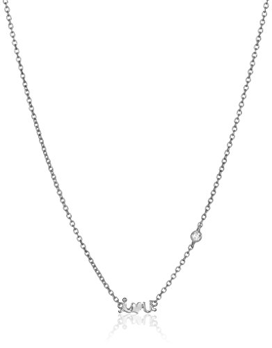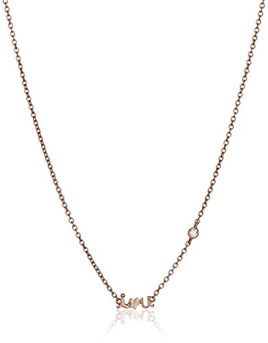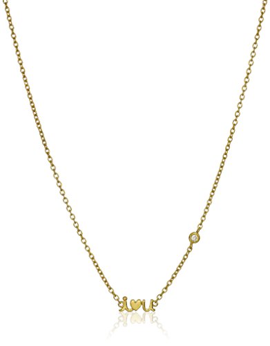 Delicate necklace in 14k plated finish featuring small "I heart u" charm centerpiece and bezel-set diamond link set at side