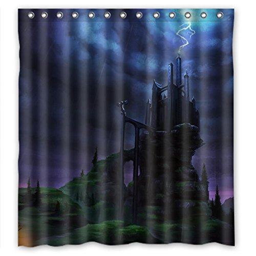 -. Title : Fantastic World Castle Rain Frankenstein Lightning Clouds Fantasy Halloween High Quality Fabric Shower Curtain