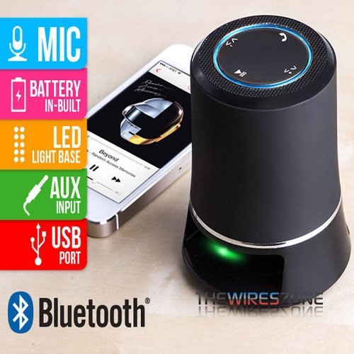 -. Feature : Portable speaker. / Supports wireless music streaming through Bluetooth wireless technology. / Easily connects to your Smartphone or other Bluetooth enabled audio device. / Plays all audio devices through 3.5 mm auxiliary jack. / LED lighted base.