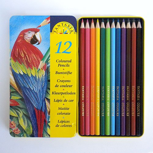 -. Binding : Kitchen -. Brand : Fantasia -. EAN : 5021851200383 -. Feature : Premium art pencils produced with fine pigments for high color concentration. / Different colors can be blended together to obtain different tones & effects. / Extra thick, blendable leads. / Soft, scratch free application. / Perfect combination of colors included in this set. -. Label : Fantasia -. Manufacturer : Fantasia -. Model : d-4236 -. MPN : d-4236 -. PackageQuantity : 1 -. PartNumber : d-4236 -. ProductGroup : Home -. ProductTypeName : HOME -. Publisher : Fantasia -. Studio : Fantasia -. Title : Fantasia Set of 12 Colored Pencils in Metal Tin -Fine Art Drawing Design Pencil Set
