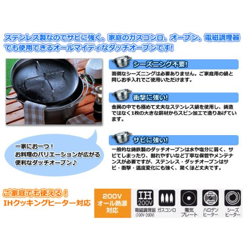 Studio : Shinfuji Burner Publisher : Shinfuji Burner Binding : Sports Product Description Made with rust proof stainless steel dutch oven. Strong from shock. No seasoning. maintenance free. Outer size:12.1×8.8×4.9 inches. Inner size:8.0×3.5inches. Weight:7.6 pounds. Made in Japan. 0
