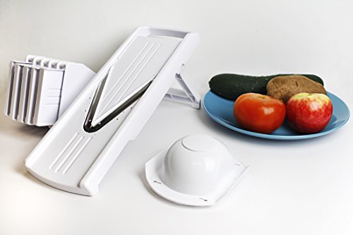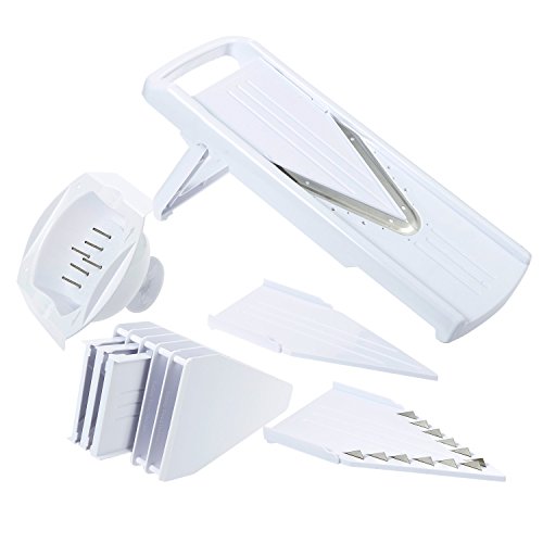 V-Blade Mandoline Slicer - 5 Stainless Steel Mandolin Blade Set - Handheld Mandoline Vegetable Slicer, Cutter, Peeler, Slicer, Grater and Julienne Food Slicer with Food Guard, White