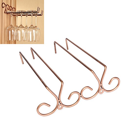 OUNONA 2 Rows Stainless Steel Wall-Mounted Wine Glass Hanger Stemware Holder For Home Bar(Bronze)