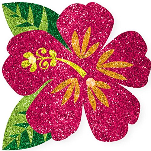 - Our Glitter Hibiscus Flower Body Jewelry features bright pink, yellow, orange, and green glitter shaped like a hibiscus flower with tiny gold rhinestone accents.