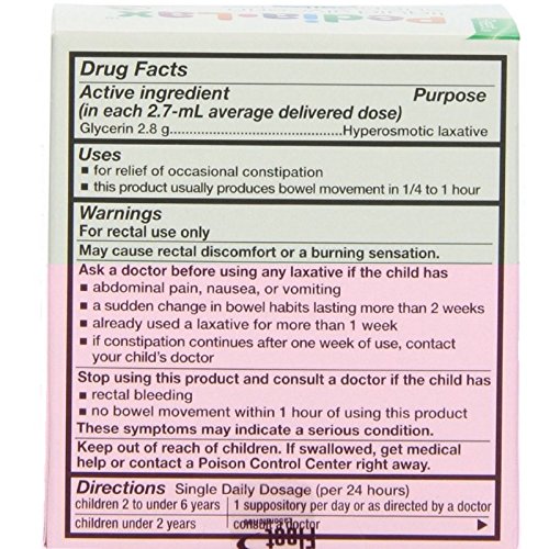 Product DescriptionFleet Children's Pedia-Lax Liquid Glycerin Suppositories -- 6 Suppositories0