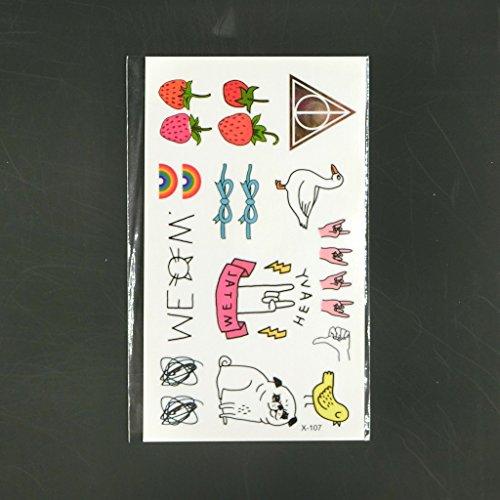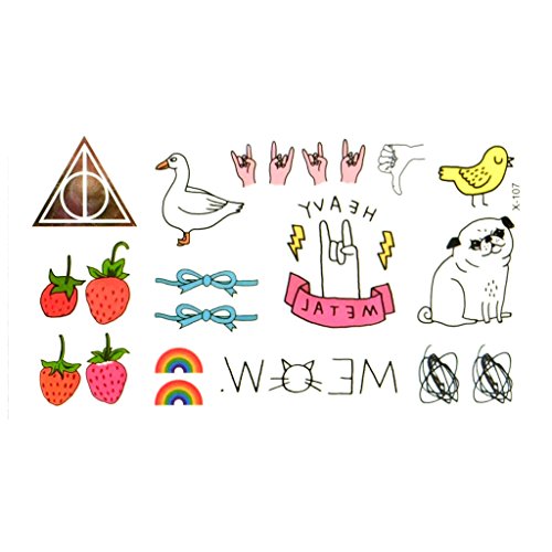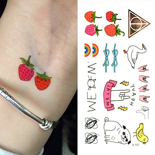 Oottati Small Cute Temporary Tattoo Strawberry Dog Duck Cat Finger (Set of 2)
