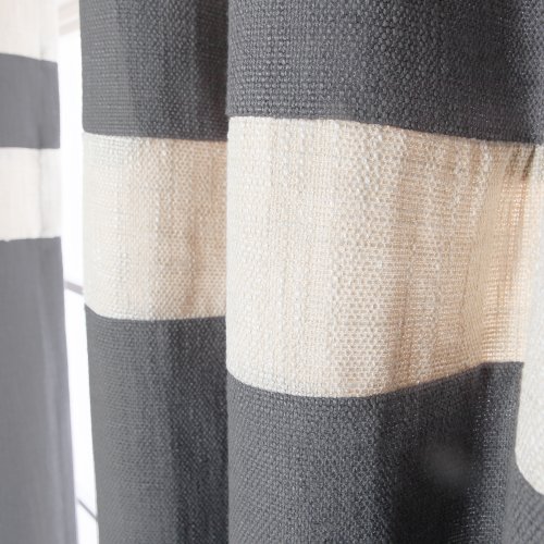 Color-coordinated striped detailing adds contemporary lines and texture to these Heavyweight Faux Linen Curtains