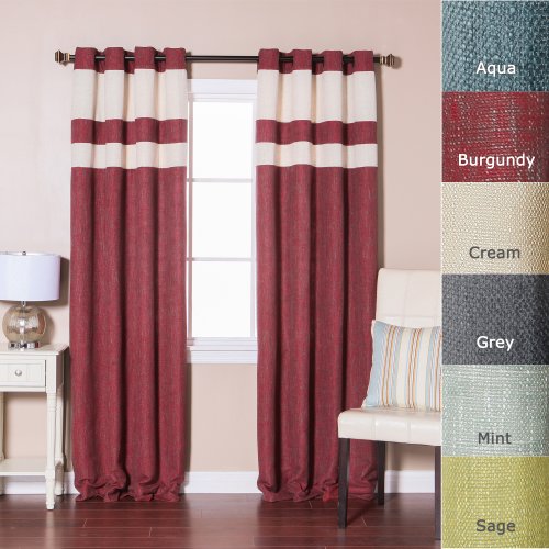 Color-coordinated striped detailing adds contemporary lines and texture to these Heavyweight Faux Linen Curtains;Available in 6 colors: Aqua, Burgundy, Cream, Grey, Mint and Sage;Hang with standard or decorative rod and brackets (not included);Measurement : Each panel measures 52" W x 84" L | Set measures 104" W x 84" L Grommet Size: 1.6" Diameter of Grommet, Including Grommet Rim 2.7");Machine washable for easy careFeature