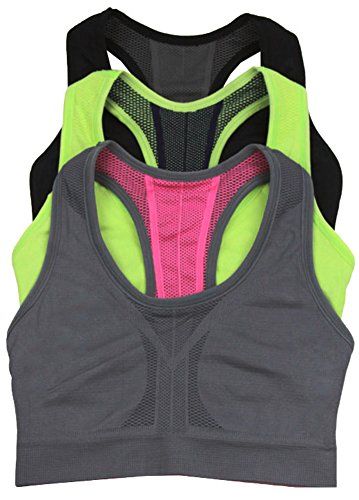 ToBeInStyle Women's Pack of 3 Reversible Compression Double Layered Sports Bras