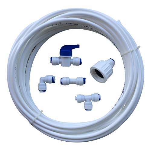 Studio : Finest-Filters Publisher : Finest-Filters Product Description You are purchasing a American Fridge Freezer Connection Kit. This kit includes all the required accessories to connect your appliance to the mains water supply via a 3/4" BSP Screw Thread Tap. This kit includes: 1 x 10m length of 1/4" pipe, 1 x 3/4" BSP to 1/4" Push Fit Screw in Adapter, 1 x 1/4" Inline Ball Valve, 1 x 1/4" Straight Connector, 1 x 1/4" Elbow and 1 x 1/4" Tee Piece. 0
