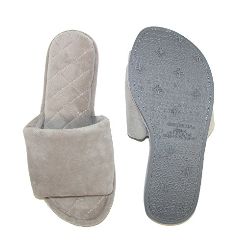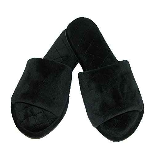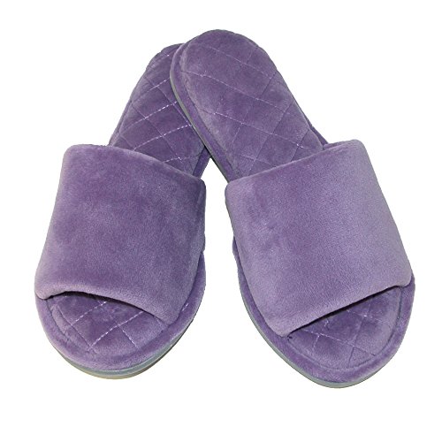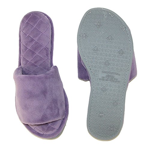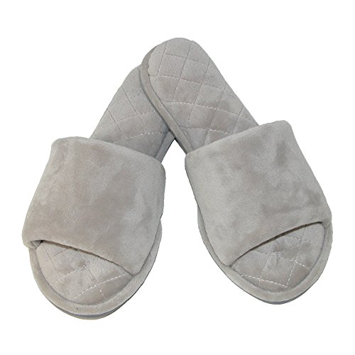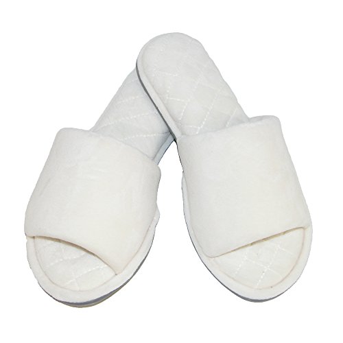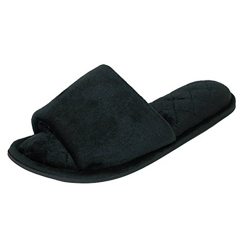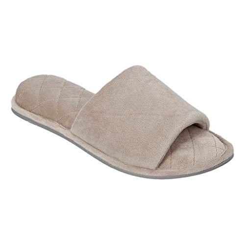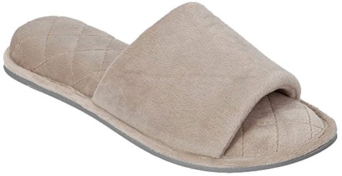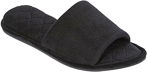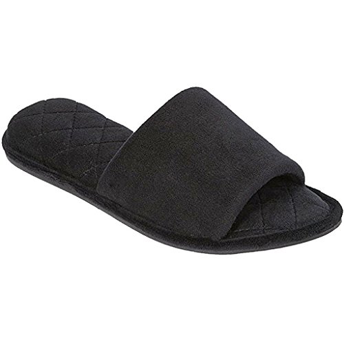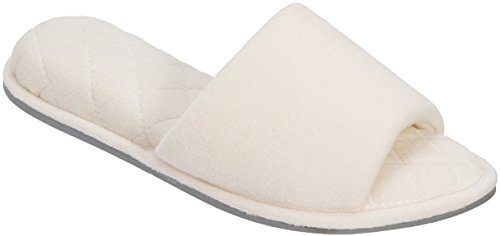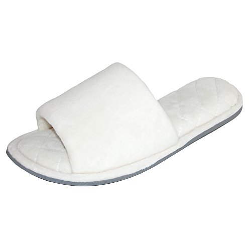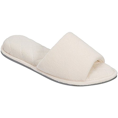 Studio : Dearfoams Publisher : Dearfoams Product Description These classic Dearfoams open toe scuff slippers are perfect for getting out of the shower or relaxing around the house. Features include soft, absorbent terrycloth, multi-density cushioning system, quilted footbed and indoor/outdoor soles. Your feet are sure to be comfortable and happy! Machine washable. 0