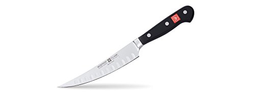 This hollow edge version of the Wusthof Classic 6 inch curved boning knife features a curved, hollow edge blade that makes easy work of deboning a chicken or trimming a roast with ease and precision. The hollow edge resists food sticking to the blade. Wusthof Classic knives are forged from a single piece of high carbon no-stain steel, a specially alloyed steel. Painstakingly manufactured, these knives are pure fun to work with and will turn even the preparation of a simply dish into a culinary pleasure. Made in Solingen, Germany.