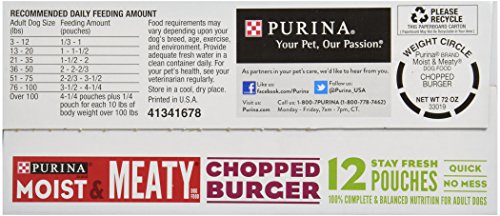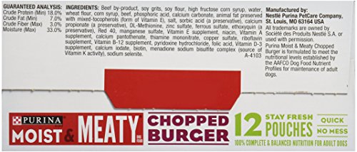 -. Title : Purina Moist & Meaty Dog Food, Chopped Burger, 12 Pouches, 6 oz each