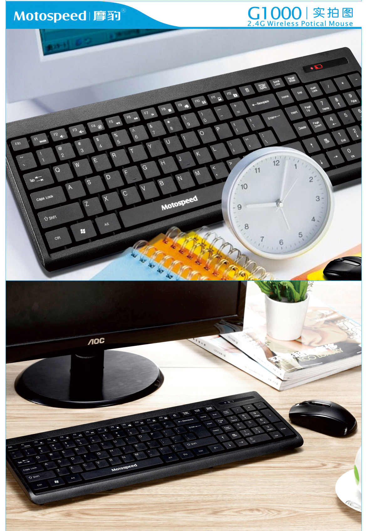 摩豹G1000无线键盘鼠标套装超薄省电静音无线键鼠套件巧克力键盘