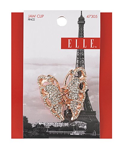 -. Binding : Health and Beauty -. Brand : Elle -. EAN : 0074108473059 -. Feature : Crystal rhinestone butterfly that is sweet and lovely. / Exquisite workmanship. / Suitable for work, party and daily life. / Stylish ornaments for dressing up yourself or giving as a gift. / Can be worn with hair up or down. -. Label : Conair Brushes -. Manufacturer : Conair Brushes -. Model : 47305 -. MPN : B01NAXPFVW -. NumberOfItems : 1 -. PackageQuantity : 1 -. PartNumber : B01NAXPFVW -. ProductGroup : Beauty -. ProductTypeName : BEAUTY -. Publisher : Conair Brushes -. ReleaseDate : 2017-01-30 -. Studio : Conair Brushes -. Title : Elle Rose Gold and Crystal Rhinestone Butterfly Jaw Clip -. UPC : 074108473059