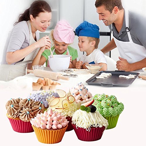 Product Description Silicone Cupcake Liners 24 Pack Baking Cups Reusable Nonstick Muffin Liners with Food Grade 4 different Shapes 6 colors for breakfast, lunch, dinner, snack, desserts,etc.