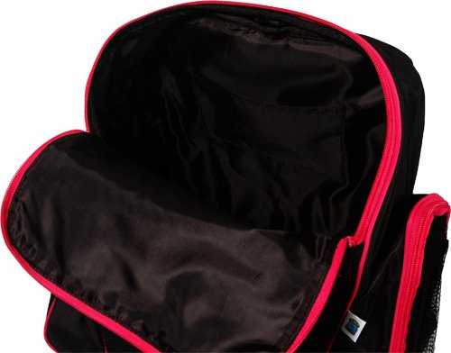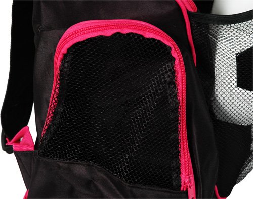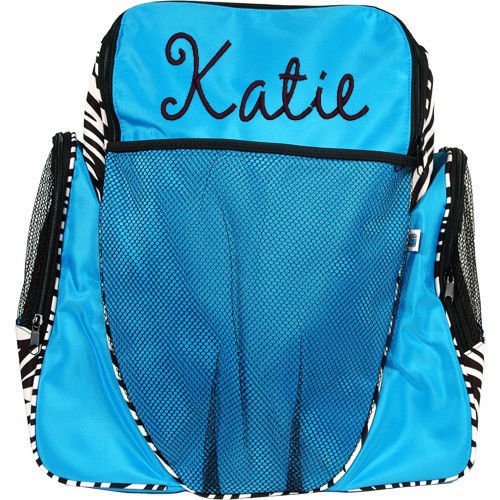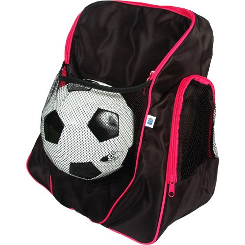-. Feature : Personalized with embroidery of your choice. Made of heavy duty, easy care, micro fiber with matching polyester lining / 16" tall, 14.5" wide, 9" deep at bottom, and 5" deep at top / Large mesh pocket in front fits Size 3 soccer ball. Larger balls easily fit inside / Large zippered mesh pockets on both sides / Padded back and straps for comfort