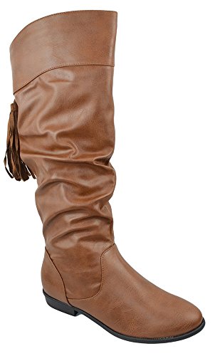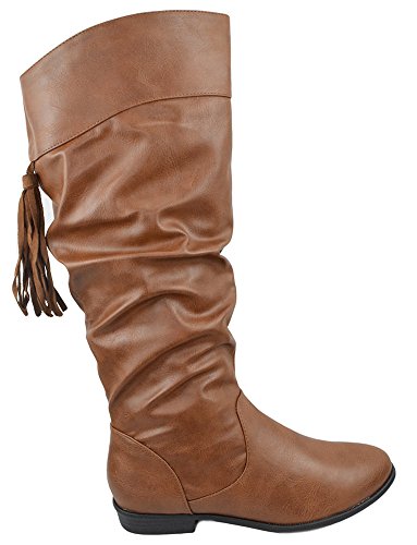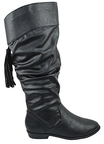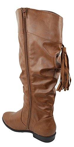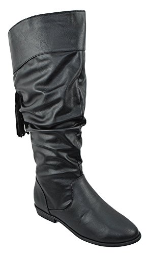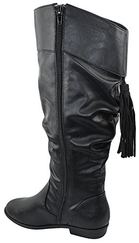 Soda Women Flat Slouchy Basic Knee High Boots Side Zipper Fringe Lace Faux Leather Wales