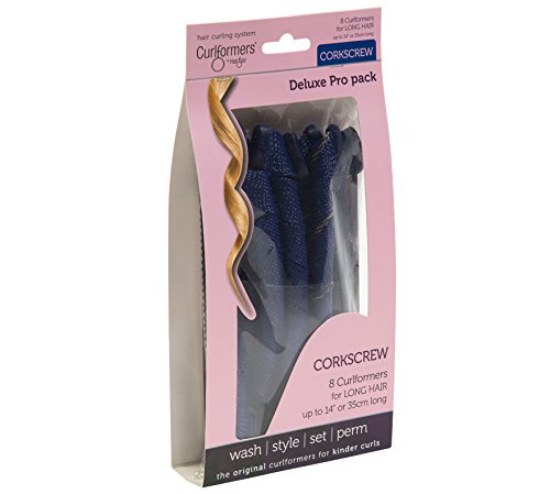 - HIGH QUALITY HAIR CURLERS. The Corkscrew Top Up Pack contains 8 Corkscrew Curlformers hair curlers in 2 different colours: 4 dark blue for clockwise curls and 4 dark blue with a gold strip which curl in the opposite direction, creating uniform or random, smooth corkscrew curls for medium length hair up to 14" (35cm) long