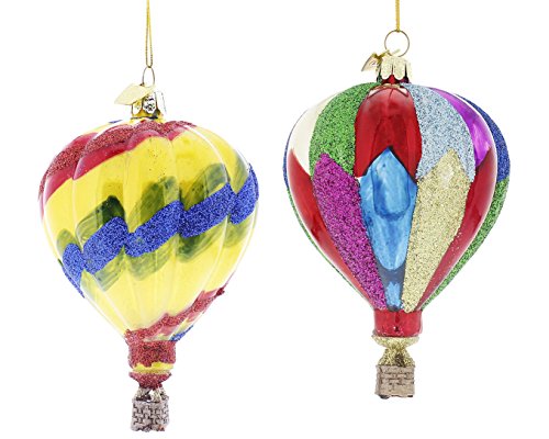 Kurt Adler Noble Gems Hot Air Balloon Christmas Ornaments 2 Assorted