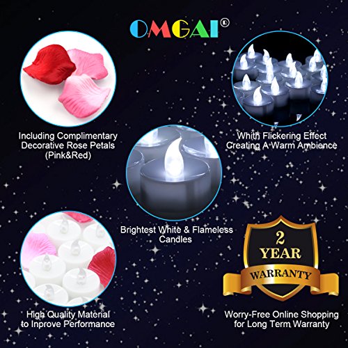 ★ A MULTITUDE OF USES - The OMGAI Tealight Flameless Candle can be used anywhere to achieve a persistent and atmospheric ambience.The Tealight Flameless Candles can be used in votive holders, placed on dining tables for a romantic dinner, they can be placed on the windowsill for a hearty Christmas decoration, stuffers, Valentines or they can be used in a restaurant for safe and hazard free flickering candle lights on every table