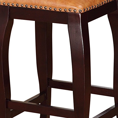-. Feature : Wenge Finish / Brown PU Top / Sleek curved legs / Antique Bronze Nail Head Accents / 24'' Seat Height