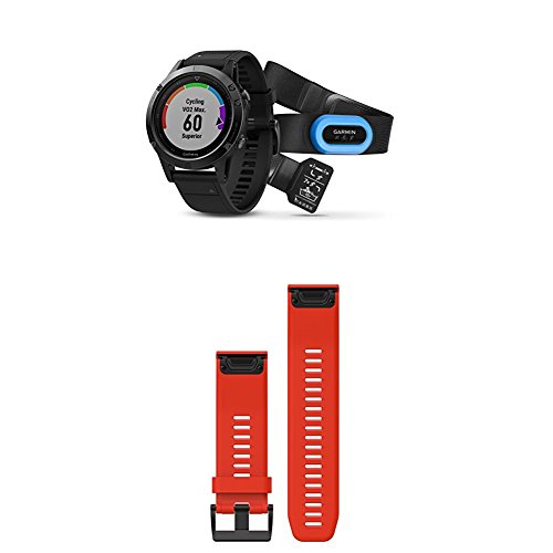 Garmin Fenix 5 Sapphire Performer Bundle - Black with Black Band and 010-12517-02 Fenix 5X Quic...