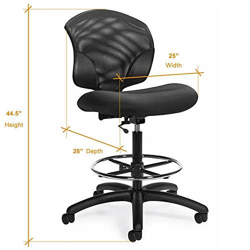 -. Feature : OVERVIEW: A mesh back drafting stool with an open armless design, 360-swivel, and chrome footring - allowing the multi-tasking user to move more freely between workstations and activities. / COLORS & MATERIALS: This sit stand desk chair has a black fabric seat and black mesh back with mock-leather side panels, and can blend in to any work environment. / ERGONOMICS: Adjustable ?rgonomic chair features that can encourage health and wellness in the workplace: Seat Height, Seat Depth, Back Angle, Waterfall Seat Edge. / AWARDS & CERTIFICATIONS: Greenguard Indoor Air Quality Certified: This drafting stool is in compliance with stringent emission guidelines set out by the Greenguard Environmental Institute. Level ® 3 Certified: Conforms to the ANSI/BIFMA e3-2012 Furniture Sustainability Standard. / WARRANTY: Our office furniture chairs are intended for a standard eight hour, single shift work day for users weighing up to 300 pounds, and are covered by a Limited Manufacturer's Warranty.