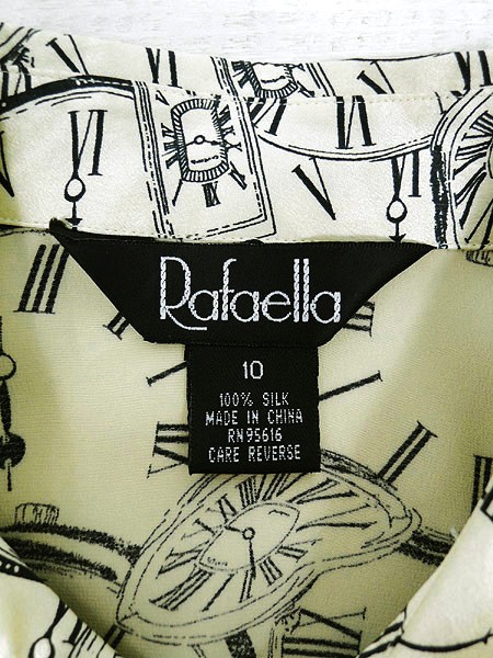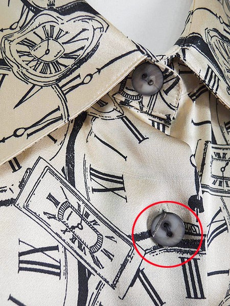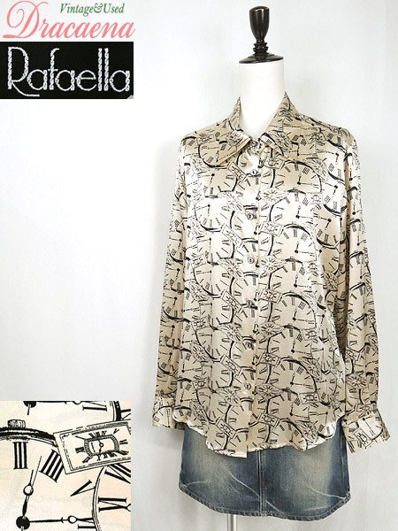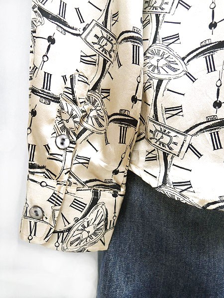 Ladies ブランド カラーベージュ・黒 メール便不可 コンディション★★★ 素材シルク100% 表記サイズ10 スタッフコメント全面に時計モチーフがプリントされたシックな1着。 シルク素材なので肌触り良し!◎ ベージュの色味が光沢感がありとても素敵です♪ ※第2ボタン付近に糸引きがありますが、目立たない程度です。 実寸サイズ 着丈 70 cm 身幅 54 cm 肩幅 43 cm 袖丈 61.5 cm ※ウエスト・ヒップ以外は平置き採寸