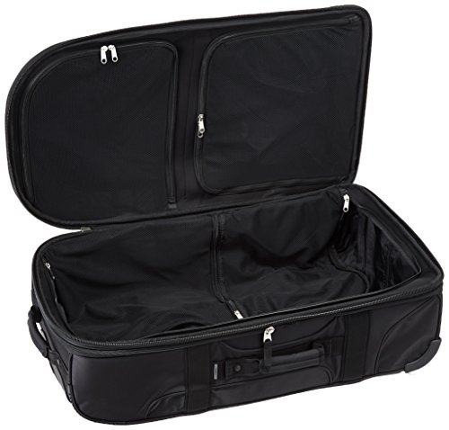 -. Feature : Internal compression straps / Three low profile external pockets / Quiet durable urethane wheels for added stability over curbs and rough terrain / Multiple grab handles / Two stage pullman handle