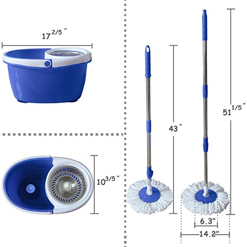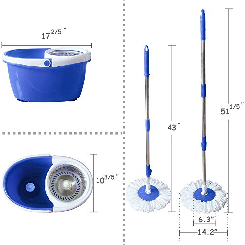 VALUEBOX 360° Rotating Bucket System, you will enjoy an effective and efficient cleaning experience with minimal labor and little mess. It's ideal for all hard floors with no bending down and no wet hands. Its microfiber mop head allows for cleaning in hard-to-reach areas. The Valuebox Spin Bucket Mop gives you the ability to control the amount of water applied to the floor, easier wringing, and quicker-drying floors.The bucket measures: (17.4 x 10.6 x 9.45)'/(L x H x W) THIS MOP Support 360-degree rotation, the mop head can move flexibly and makes by microfiber material. It's easy to install and use and consist of 2 cotton heads(a mop rod a bucket for convenience),an STAINLESS STEEL bucket is more wear-resistant to use.The mop of Material: PP ABS Microfiber Stainless Steel,Dimensions: (17.32 x 11.02 x 9.45)"/ (44 x 27 x 24)cm(L x H x W) ,Rod Length: (43~51.2)",Steel Pipe Diameter: (2.2cm,2.5cm)/(H x Dia.) ,Steel Pipe Thickness: 0.14" / 0.35cm... PACKAGE INCLUDES:2 x Cotton Heads /1 x Mop Rod /1 x Bucket /1 x User Manual