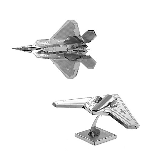 -. Binding : Toy -. Brand : Fascinations -. Color : silver -. Feature : Set of 2 Steel Model Kits / Laser Cut Museum Quality Replica / Made by Metal Earth / Easy-to-read instructions / Additional Styles Sold Separately -. Label : Metal Earth -. Manufacturer : Metal Earth -. MPN : MMS026-MMS050 -. PackageQuantity : 2 -. PartNumber : MMS026-MMS050 -. ProductGroup : Toy -. ProductTypeName : HOBBIES -. Publisher : Metal Earth -. Studio : Metal Earth -. Title : Fascinations Metal Earth 3D Laser Cut Steel Models - F22 Raptor AND Stealth Bomber RQ-170 Sentinel = SET OF 2