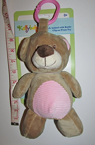 Plush bear tan,rattles, crinkle ears attached clip 10 inches