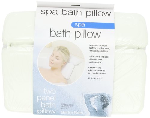 Introducing a more comfortable way to enjoy your bath or hot tub ! This innovative spa pillow is designed with two sectional pieces to cradle your head, neck and shoulders. Seven strong suction cups hold the pillow firmly in place, so all you have to do is...relax. Measures 10.5" H x 14.5" W x 2" D 7 suction cups (2 on the top section and 5 on the bottom section) Foam filled White vinyl cover Chemical and odor resistant for easy maintenanceFeature