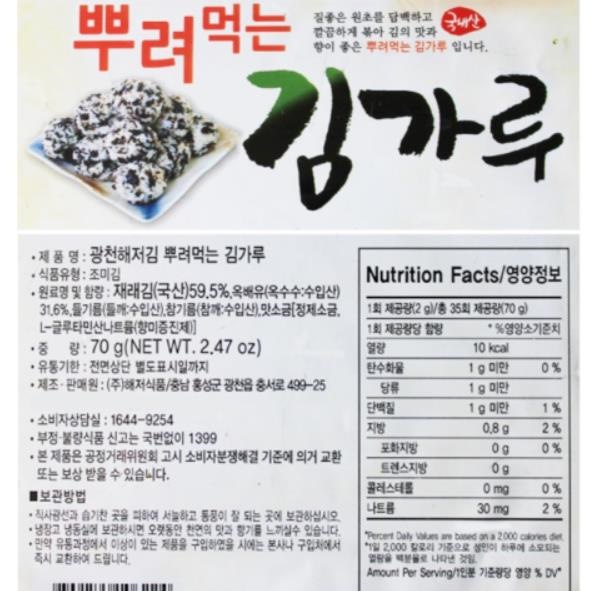 Korean Food Crushed Roasted Seaweed Seasoned Laver Sprinkled flour ( 70gx2ea )
