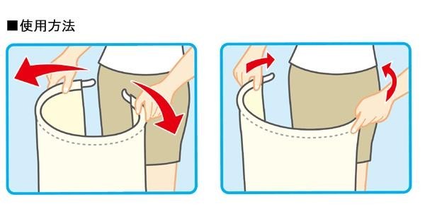 | ウエスト部分のリングを少し広げて、腰にはめるだけのワンタッチ装着で、立ったり座ったりしてもひざ掛けが落ちません。両面起毛で厚みがあり、暖かい素材を使用しています。ハサミでカットすることができ、ほつれません。車椅子での移動や、寒い時期のスポーツ観戦、オフィスでも大活躍!! |