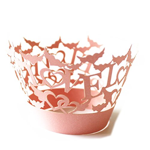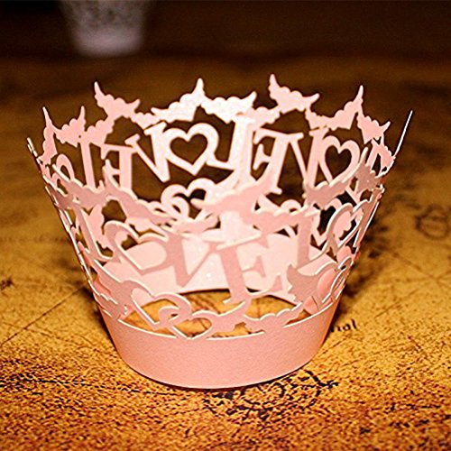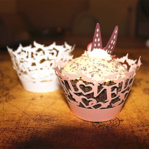 WINOMO 50pcs Love Hollow Out Paper Cake Cupcake Wrappers Muffin Cases Baking Cup Case Wedding Party Decor (Pink)